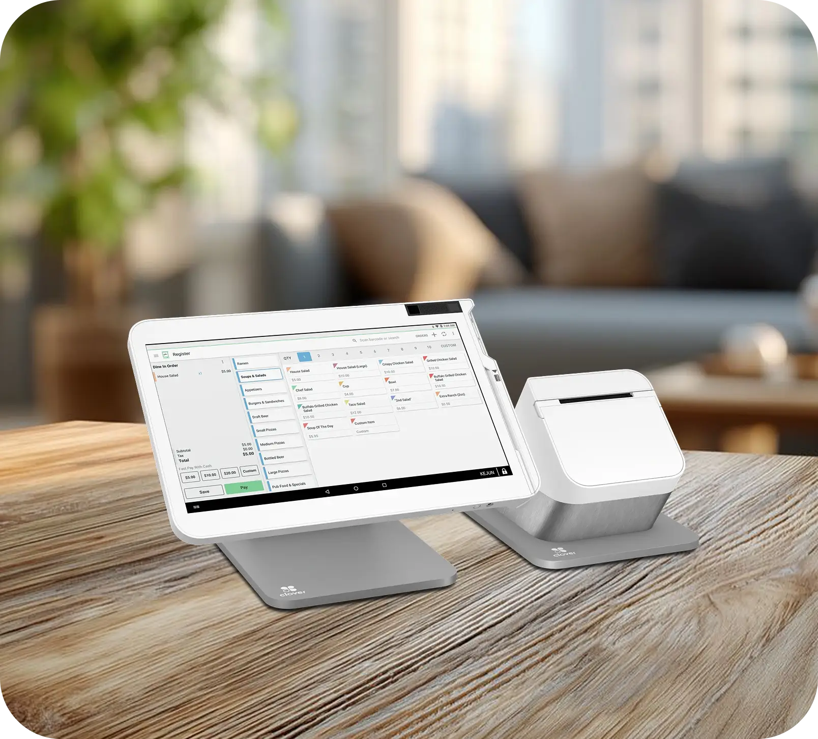 Portable all-in-one terminal perfect for tableside service and mobile businesses.